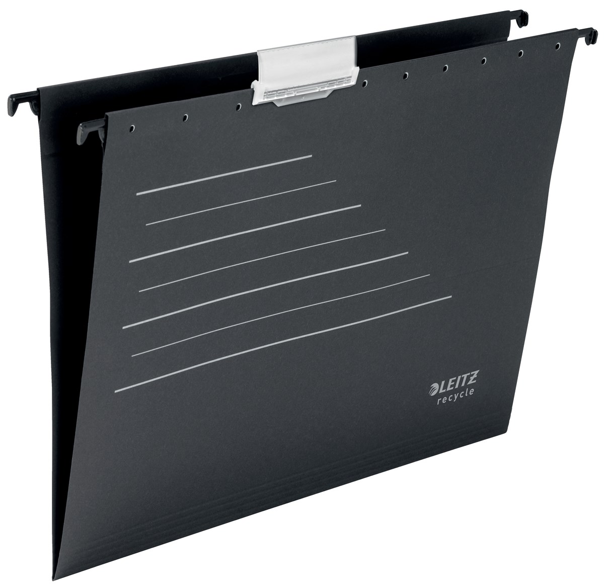 Stilren, högkvalitativ hängmapp med v-botten som passar för A4. 100% återvunnen kartong, klimatneutral genom CO2-reduktion och kompensation, 100% återvinningsbar och med miljöcertifiering från Blue Angel. Maximera förvaringsutrymmet med vertikal arkivering för att hålla papper tillgängliga och organiserade. De starka och hållbara skenor klarar tung användning och den medföljande etiketthållaren hjälper till att organisera och identifiera innehållet. Den här robusta hängmappen är gjord för att hålla länge och kompletterar andra produkter från Leitz Recycle-sortimentet. Miljövänliga och moderna kontorsprodukter som passar bra hemma och på kontoret. Med det miljövänliga Recycle-sortimentet från Leitz kan du både förbättra din kontorsmiljö - och miljön på vår planet.