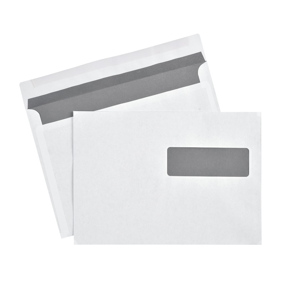 Vita konsumentpackade, fukthäftande kuvert med fönster.