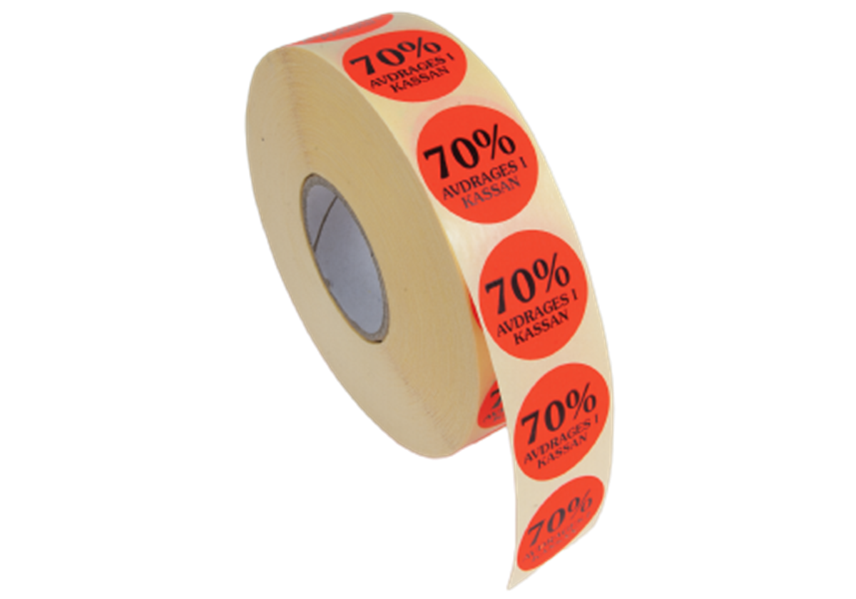 Självhäftande etiketter i fluorescerande röd färg. 29 mm i diameter. 2000 st/rulle.