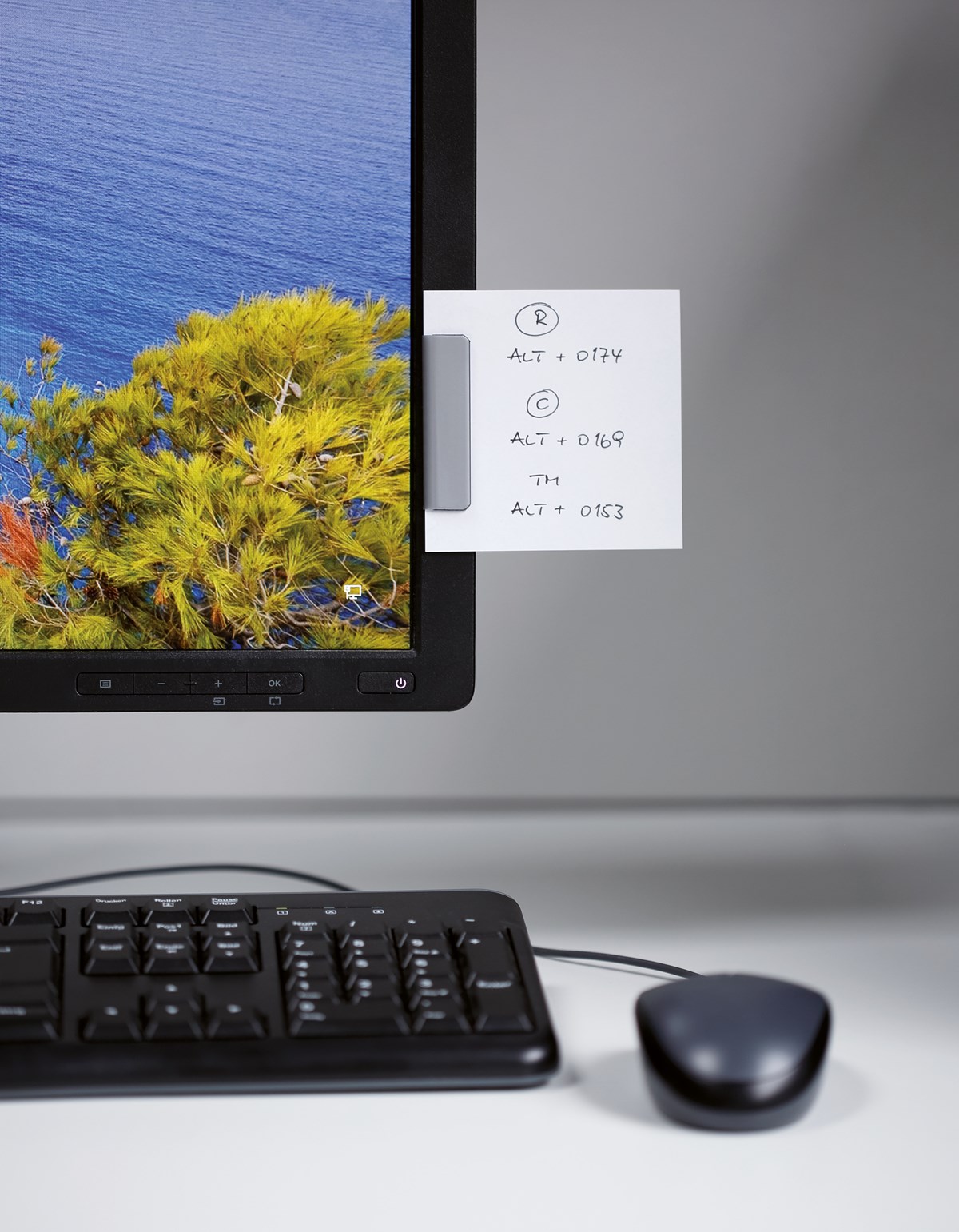 Magnetisk klämma för snabb och enkel uppsättning av anteckningar, påminnelser, information, affischer etc. Självhäftande applicering på släta underlag som skåp, glasdörrar, skyltfönster, whiteboardtavlor eller mässmontrar. 5 st/förp.
