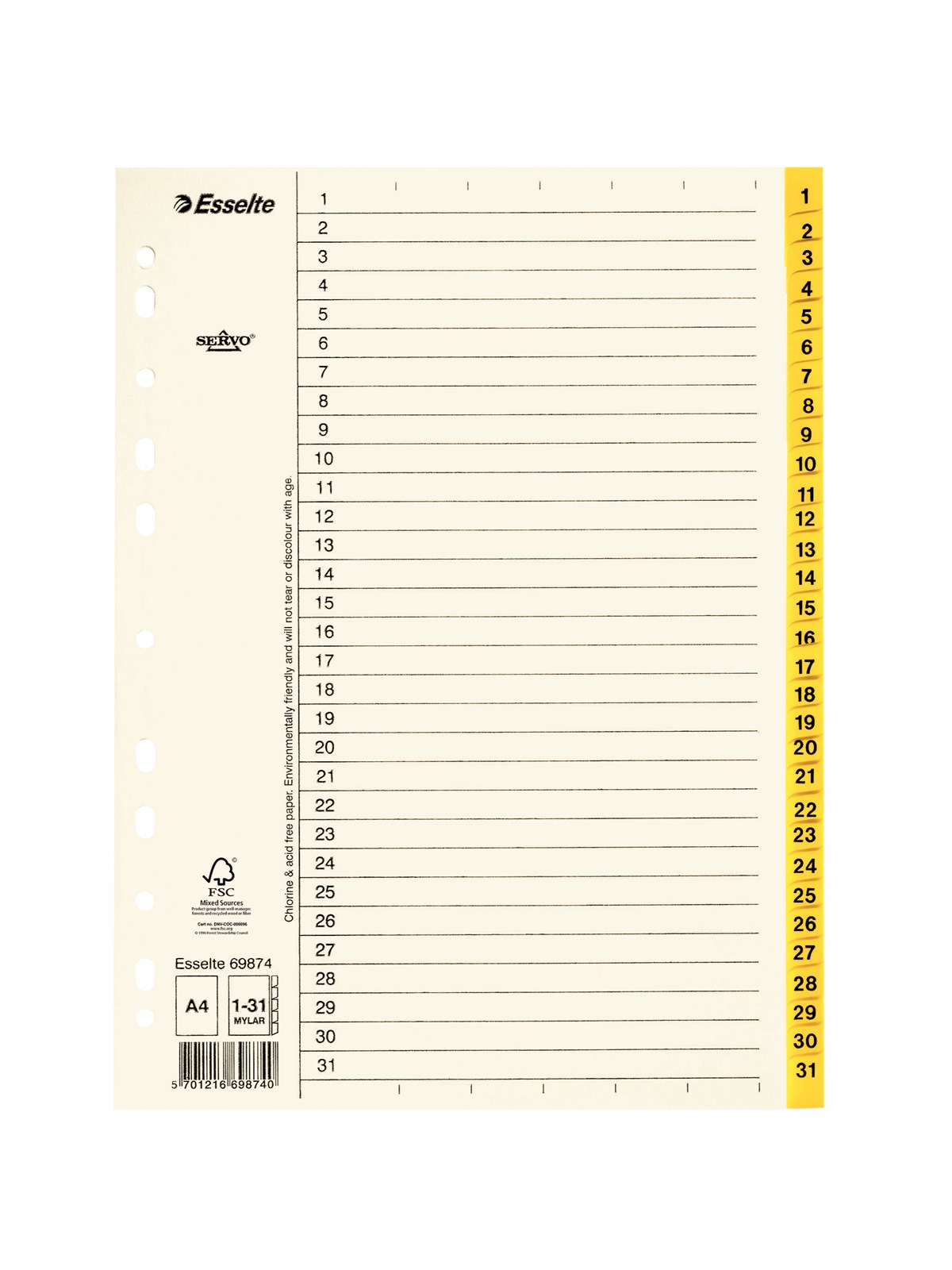Med plastförstärkta flikar. 110 g papper. Multihålade. A4-format. Mycket slitstarka.