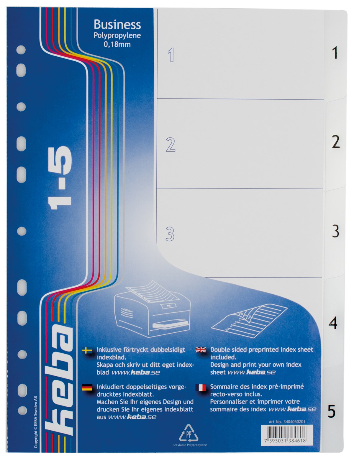 Register av mycket hög kvalitet (0,18 mm). Helt transparent för ett stilrent och modernt intryck. Indexbladet är vändbart med extra mycket plats för text. Mall för utskrift av försättsblad finns på www.keba.se. 5 års garanti.