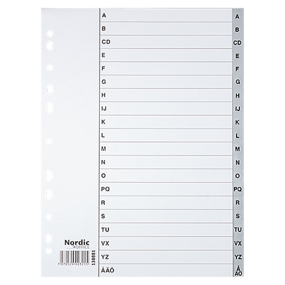 Av grå polypropylen, 0,12 mm, med svart fliktryck. Multihålade.