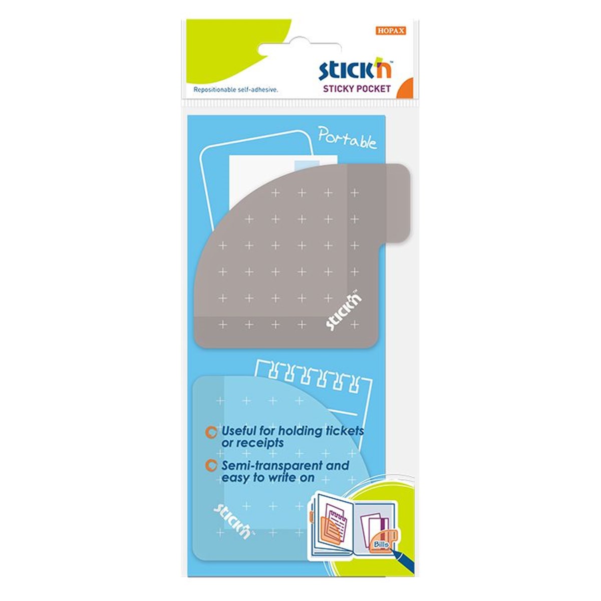 Självhäftande fickor Stick'n Sticky Pocket 70x70 mm blå/grå