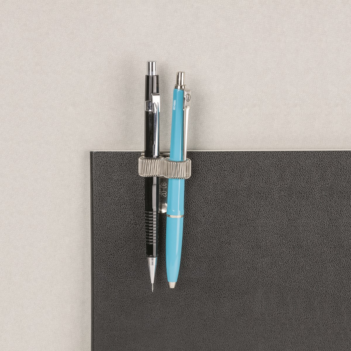 Praktiskt tillbehör till pennor utan clips. Stålklämma för lätt fastsättning i t.ex. bröstfickor.