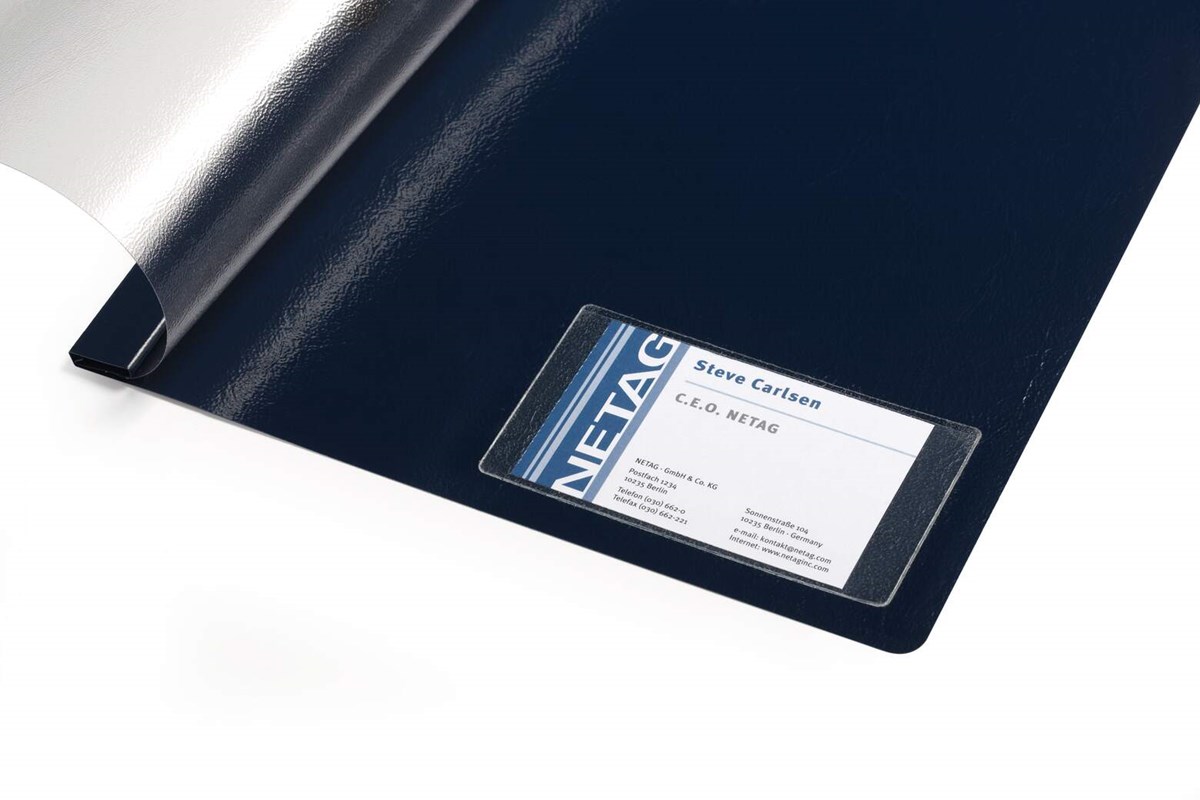 Märk pärmar, mappar, lådor o dyl med etiketter som stoppas i en självhäftande Pocketfix ficka. Den transparenta fickan är tillverkad av polypropylenplast. Denna ficka har öppning längs ena långsidan. Levereras utan etiketter. Innermått: 101x61. Yttermått: 105x65 mm (BxH). Förpackning med 10 fickor.