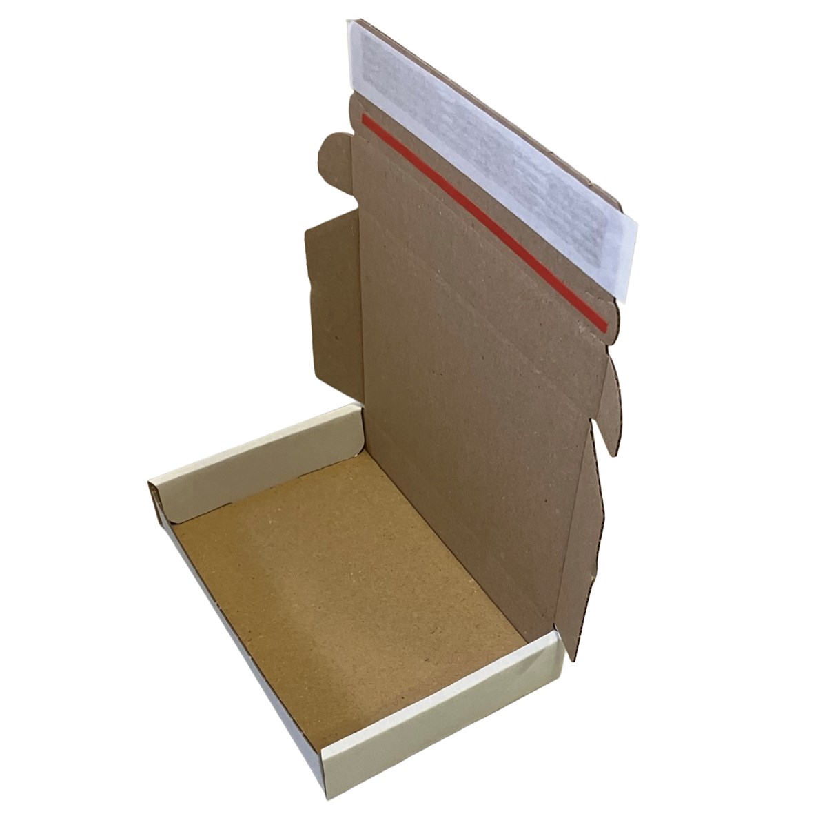 En mindre låda lämplig att skickas som brev. Tack vare att yttermåttet håller en lägre höjd än 3 cm går det in i vanliga brevinkast och postlådor. Försluts med inbyggd tejpremsa och den inbyggda rivremsan gör öppnandet smidigt. Kan levereras med tryck. Färg: vit/brun. 20 st/förp.