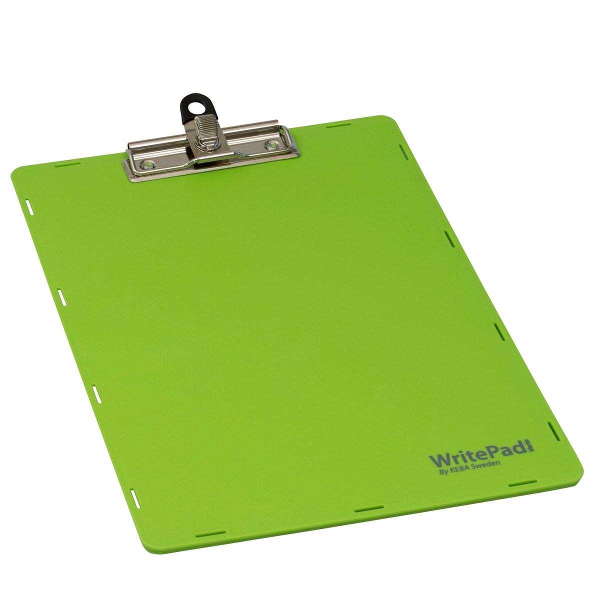 Svensktillverkad skrivplatta i PP. Tål avtorkning och desinfektion. Klämma med hål för upphängning på krok. Pennhållare på clipset. 5 års garanti.
