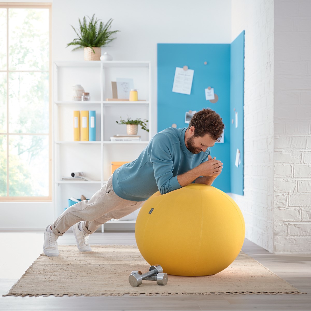 Ergonomisk balansboll som håller dig aktiv hela dagen Uppmuntrar till rörelse i rygg- och coremuskler för bättre hållning, flexibilitet och mindre ryggont Perfekt att använda som en skrivbordsstol för rörelse medan du arbetar Använd för olika typer av träning så som yoga, sjukgymnastik, magövningar eller till att sträcka ut ryggen Generös diameter på 65 cm med en robust ftalatfri innerboll, håller för upp till 100kg