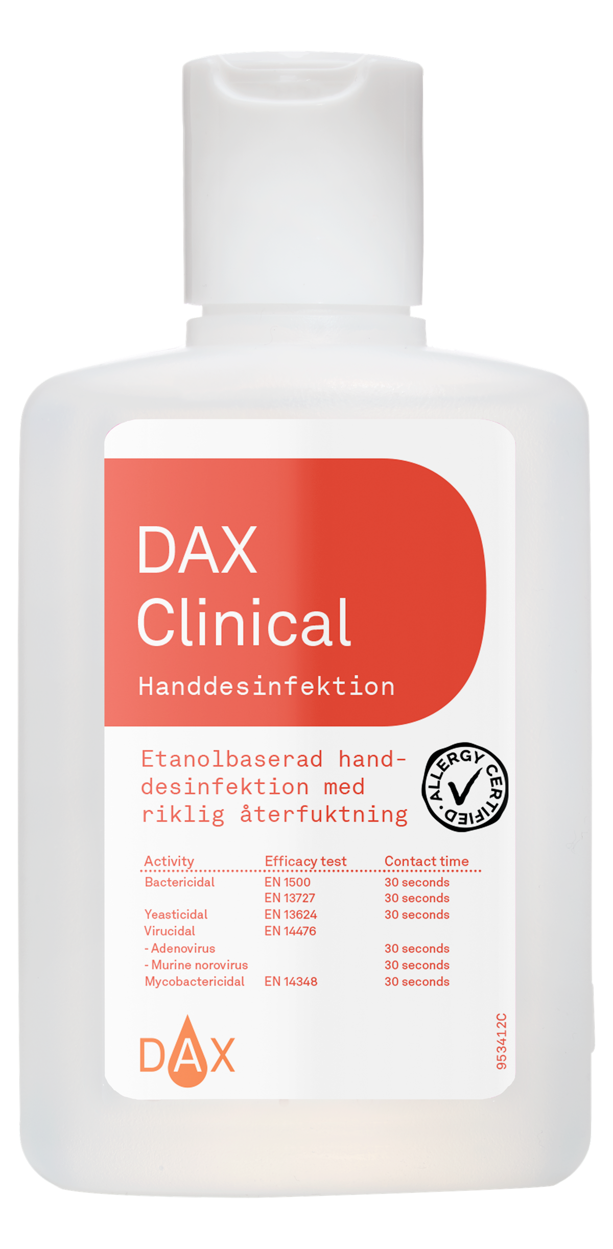 DAX Clinical Handdesinfektion är en hygienisk, flytande handdesinfektion som är utprovad i samarbete med svensk sjukvård. Produkten är etanolbaserad och effektiv mot bakterier, jästsvamp, mykobakterier och många typer av virus som t.ex. Coronavirus, Adenovirus och Murine Norovirus. Innehåller två återfuktande ingredienser.