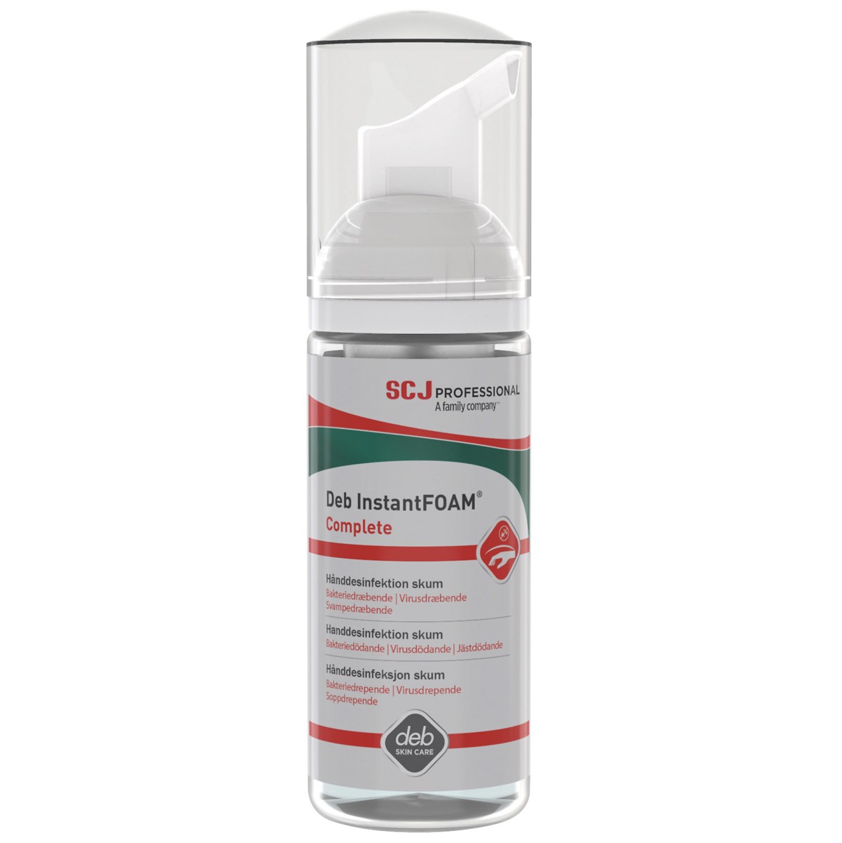 Alkoholbaserad skumhanddesinfektion (80% alkohol) som innehåller fuktgivare. Tar bort 99,99% av dom vanligast förekommande bakterierna. Uppfyller standarderna bakteriedödande (EN1500), virusdödande (EN14476), jästdödande (EN1650) och mykobakteriedödande (EN14348).