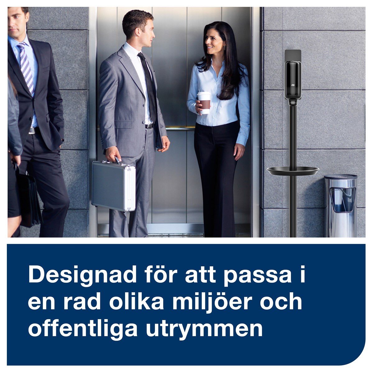 Golvställ som tillhandahåller handdesinfektion när vatten inte finns tillgängligt och påminner dina anställda om handhygien. Stabil och robust design. Kompatibel med både manuella och sensordrivna dispensrar för handdesinfektion. Passar Tork hållare S1 och S4. Plats för en dispenser. Mått ställ: 147,6 x 50 cm.