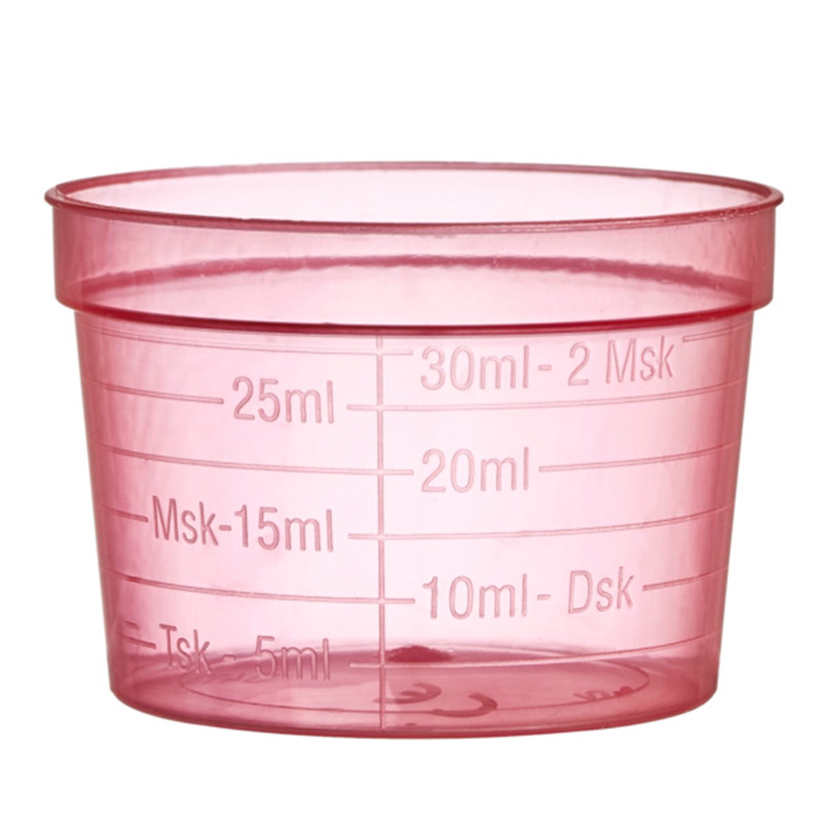Medicinbägare för engångsbruk tillverkad av mjuk plast av polypropen. Graderad upp till 30 ml.