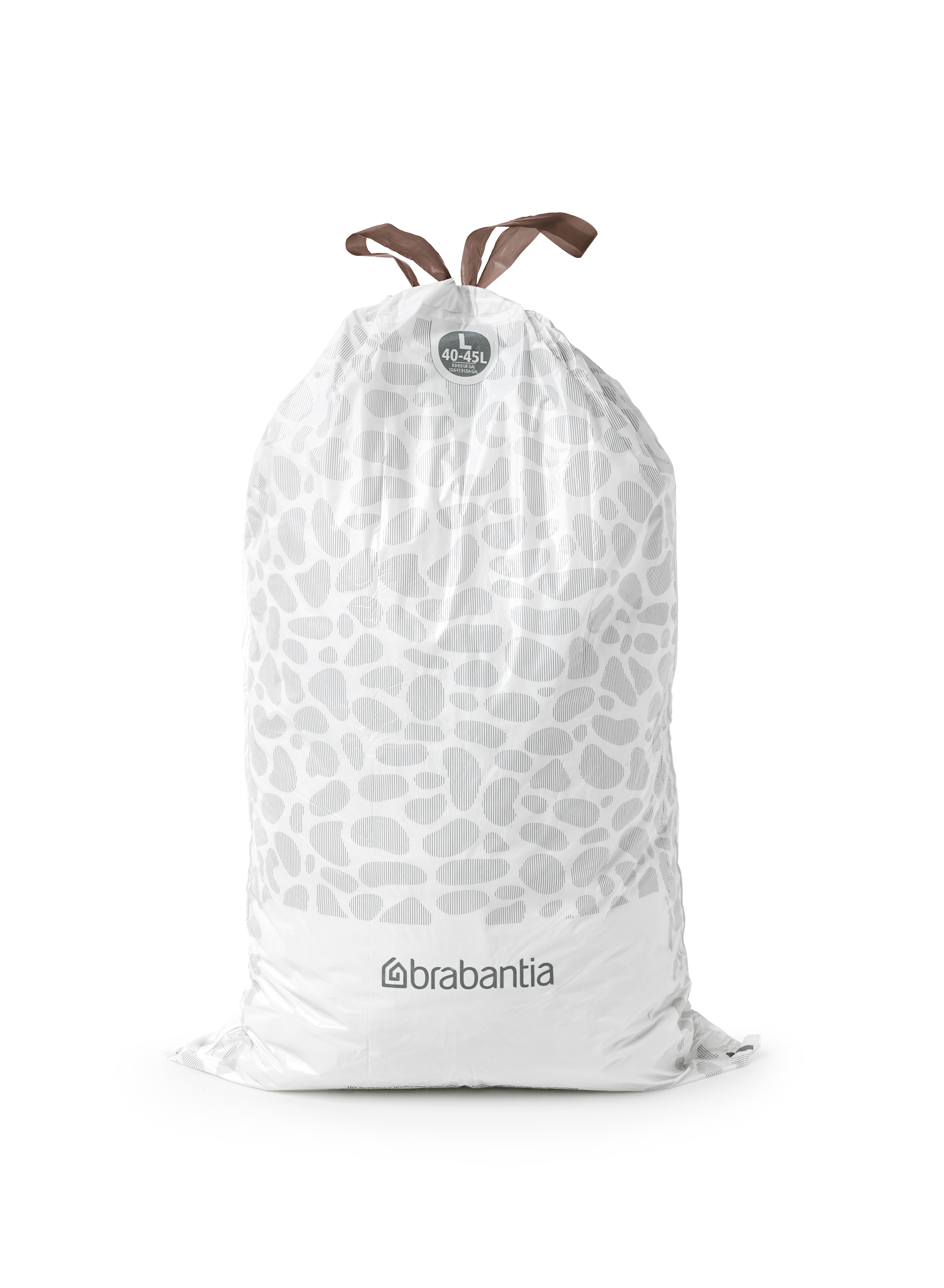 Perfekt passform – skräddarsydd för Brabantias avfallshinkar. Varje avfallsbehållare från Brabantia har en kodning i locket. Matcha kodningen i locket med påsar av samma kod så passar påsen perfekt. Tack vare ett praktiskt knytband som dessutom fungerar som bärsnöre går det snabbt och enkelt att byta påsen. Kanten blir i princip osynlig och sitter alltid säkert på plats i din avfallshink. 40 påsar/förp.