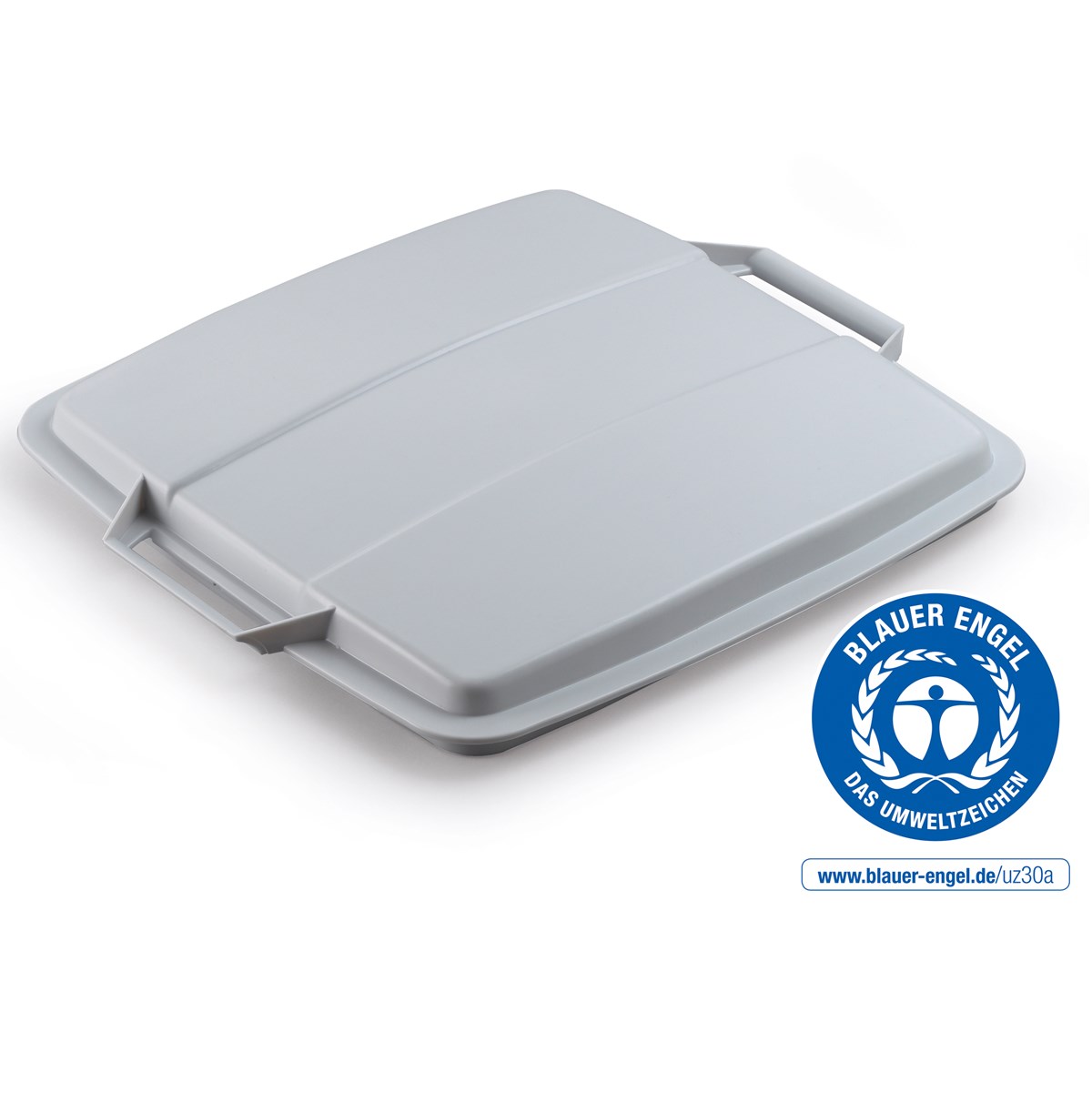 Plasten som detta lock är tillverkat av, består av minst 80% insamlad återvunnen plast, samtidigt som den har lång livslängd och är fullt återvinningsbar. Användningsområdena för DURABIN-serien är många - som stor papperskorg, återvinningssortering, korg för upphittade kläder etc.
