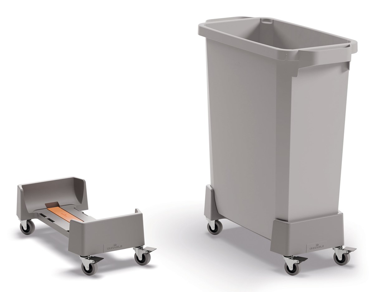 DURABIN 60 rPP gör det lätt att flytta en fylld DURABIN 60 liters soptunna på ett smidigt sätt. Det kan t.ex. vara råmaterial, material som ska återvinnas eller matavfall som ska samlas ihop på annan plats. För inomhus- och skyddad utomhusanvändning på plana ytor i lagerlokaler, produktionsområden, matsalar etc. Upp till 4 rullplattor - för både 60 och 90 liters tunnor, kan kopplas ihop med hjälp av de medföljande och integrerade kopplingarna.