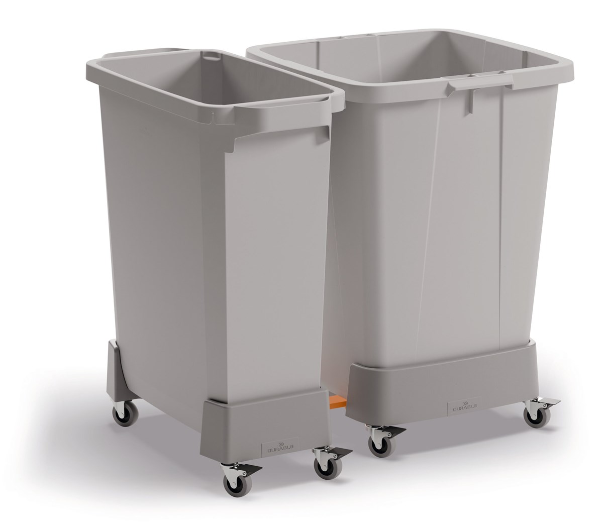 DURABIN 90 rPP gör det lätt att flytta en fylld DURABIN 90 liters soptunna på ett smidigt sätt. Det kan t.ex. vara råmaterial, material som ska återvinnas eller matavfall som ska samlas ihop på annan plats. För inomhus- och skyddad utomhusanvändning på plana ytor i lagerlokaler, produktionsområden, matsalar etc. Upp till 4 rullplattor - för både 60 och 90 liters tunnor, kan kopplas ihop med hjälp av de medföljande och integrerade kopplingarna.