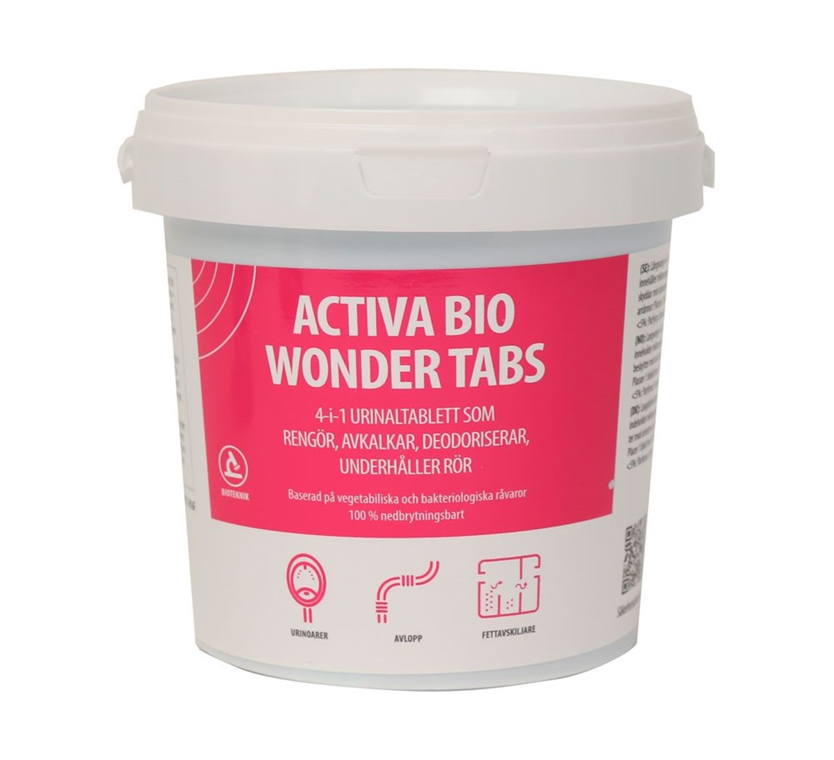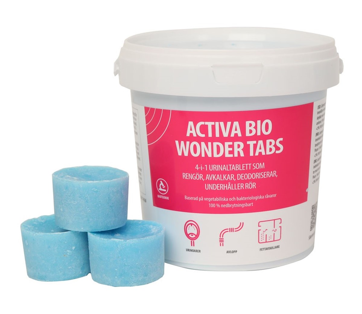 Ett urinoarblock som jobbar med en 4-i-1-effekt: Rengör, avkalkar, deodoriserar och underhåller avloppssystemet i ett enda steg. Ett smart och hållbart sätt att hålla urinoarer fräscha och i toppskick – varje dag. Med hjälp av den patenterade CONSORTIUM®-processen innehåller blocket naturliga mikroorganismer (så kallade goda bakterier) som jobbar på djupet – även när du inte gör det.