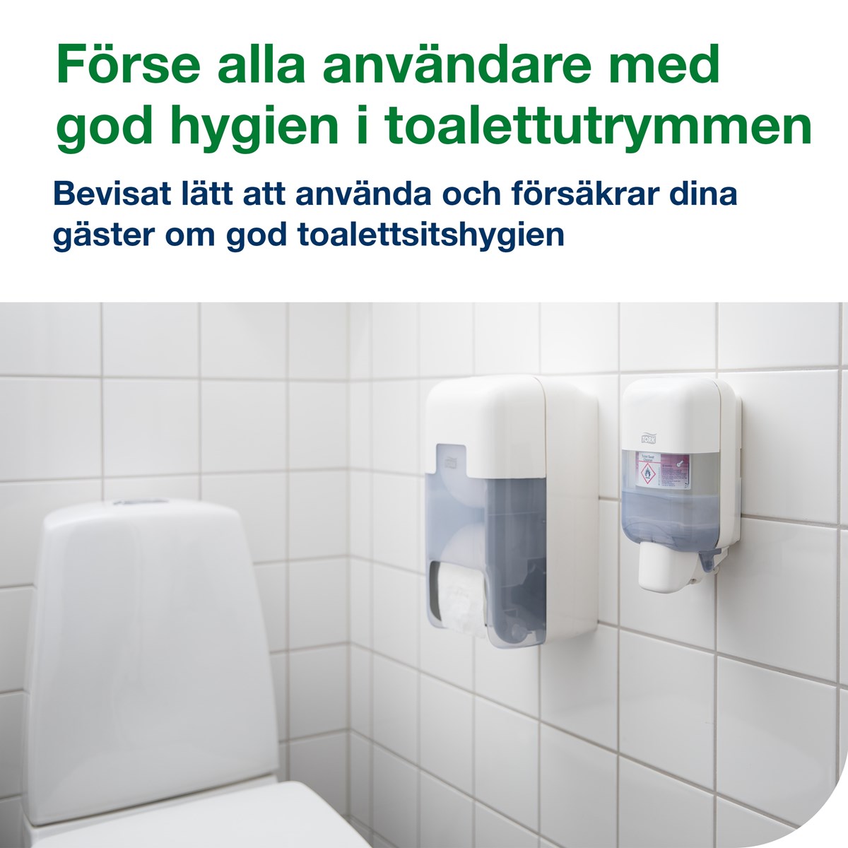 Tork Toalettsitsrengöring ger extra trygghet för besökare. Säkerställ en renare toalettsits med en dos toalettsitsrengöring på en bit toalettpapper. Denna refill passar med Tork Dispenser Tvål och Handsprit Mini och är bevisat lätt att använda.