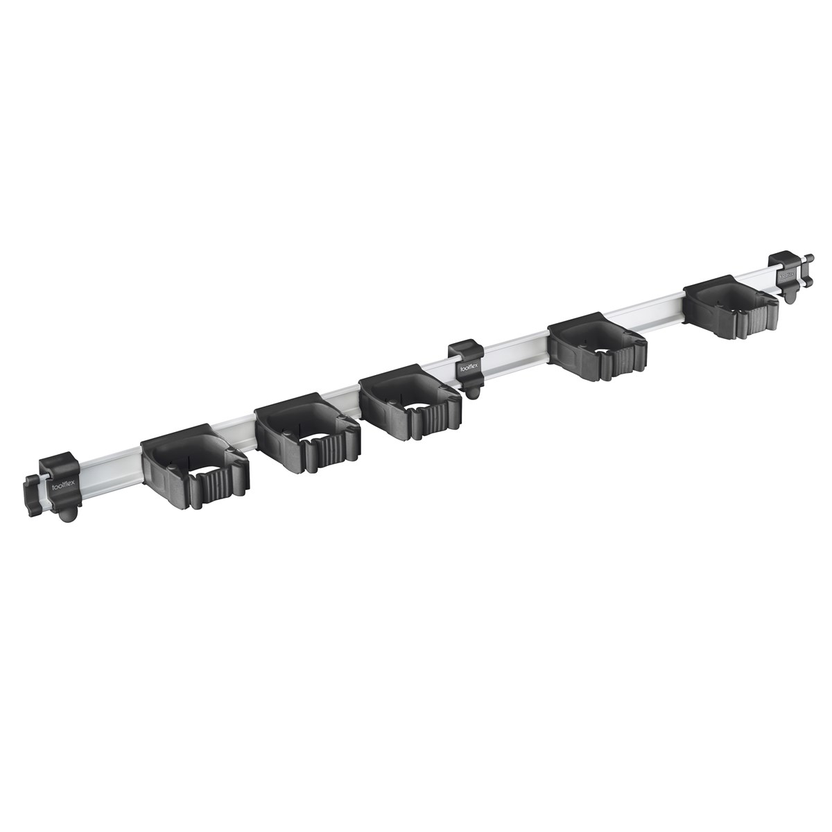Skena med 5 hållare för redskap med Ø 15-35 mm. Monteras på vägg med medföljande väggfästen samt skruv och plugg. Längd: 94 cm.
