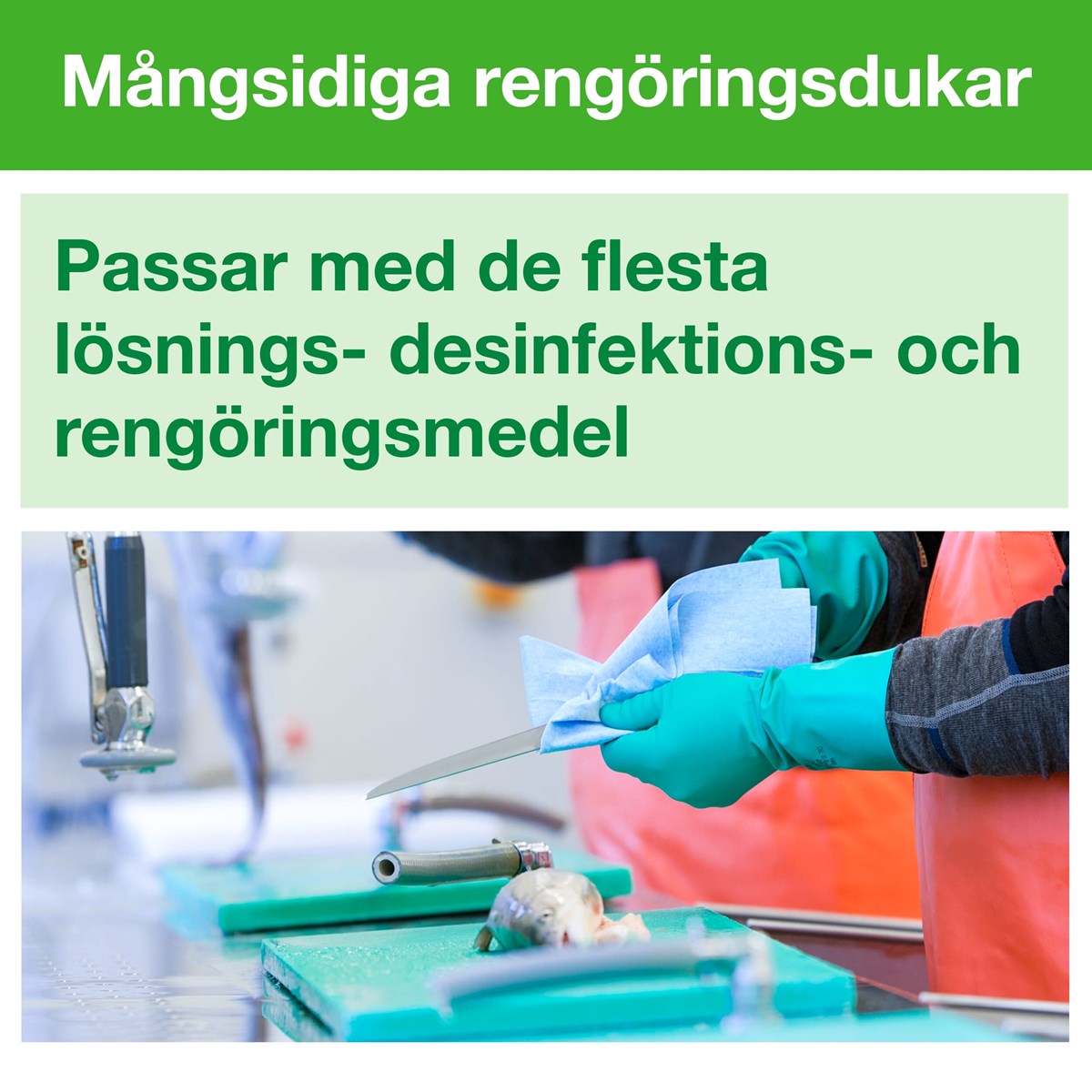 Tålig städ- och rengöringsduk i nonwovenmaterial som kan användas gång på gång utan att gå sönder. Finns i fyra olika färger för att förhindra korskontaminering. Godkänd för livsmedelskontakt. Mått: 30 x 38 cm. 40 dukar/förp.