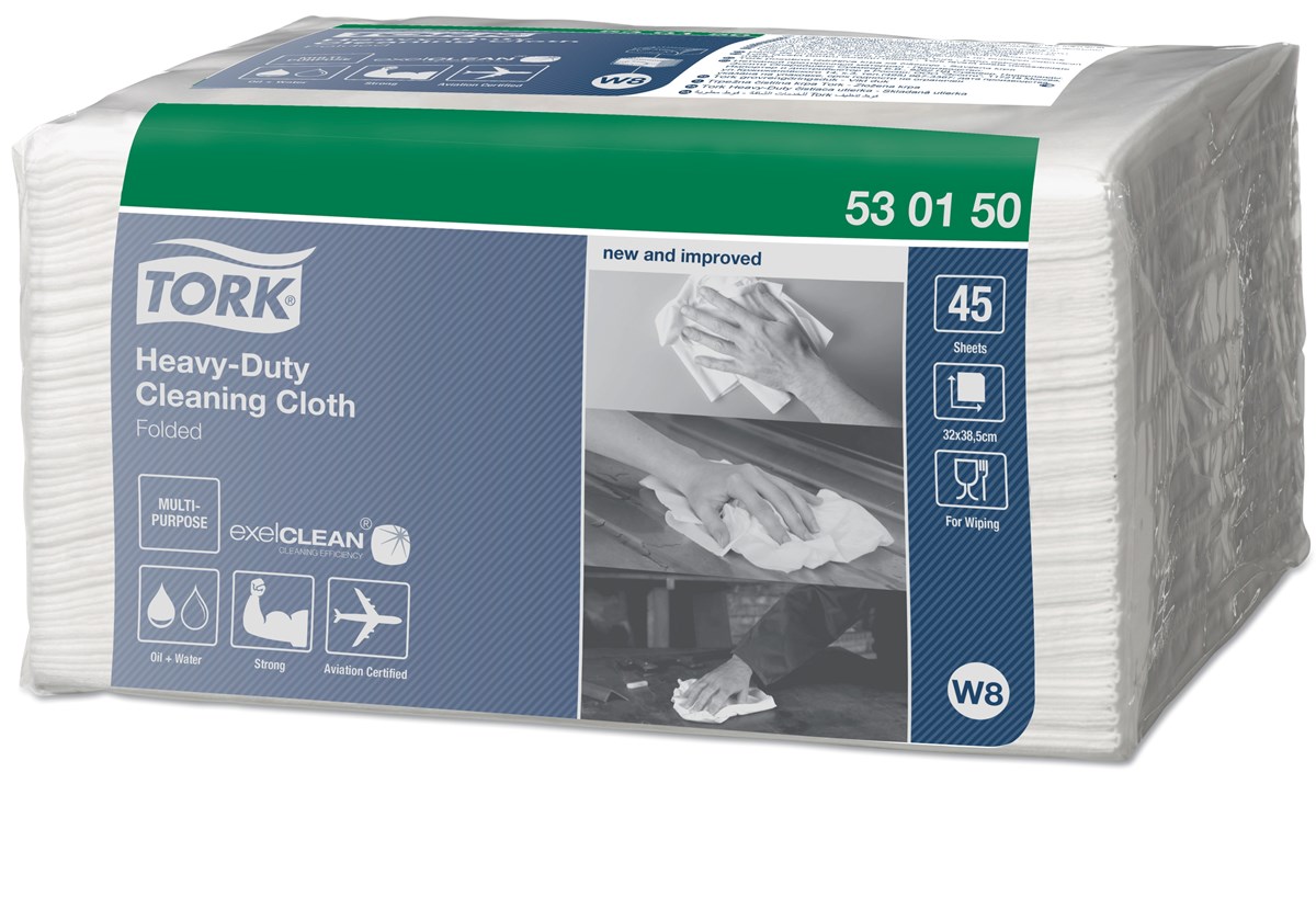 Mycket tålig och absorberande non-woven-duk som kan användas med de flesta lösningsmedel. Tar snabbt bort olja, fett, vatten och envisa fläckar. Utformad för att skydda dina händer från hetta och metallspån. Med exelCLEAN som ger resultat i toppklass. Mått: 38,5 x 32 cm. 45 vita dukar/förp. 360 dukar/kartong.