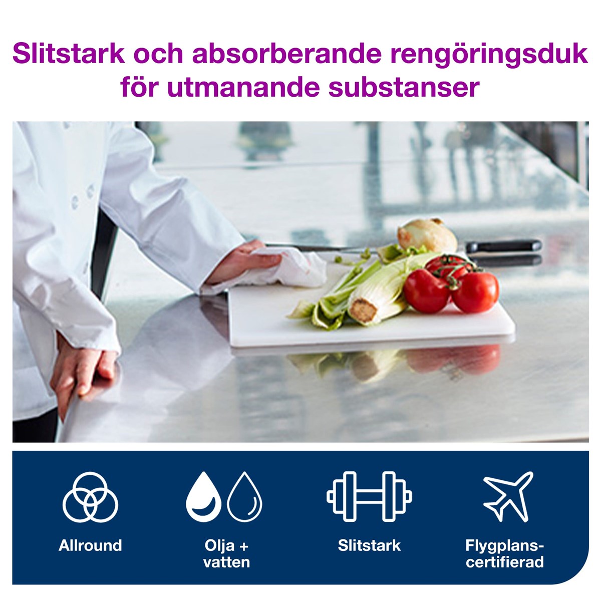 Extra kraftig kvalitet som möjliggör användning upprepade gånger Skyddar händer från värme och metallspån Hög hållbarhet och absorptionsförmåga för att kunna avlägsna envisa substanser Material med exelCLEAN® för ett professionellt resultat Fungerar med de flesta lösningsmedel