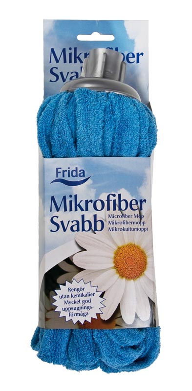 Mikrofibersvabb med 150 cm teleskopskaft. Rengör utan kemikalier. Mycket god uppsugningsförmåga. Svabben kan tvättas i 60°C, utan sköljmedel.