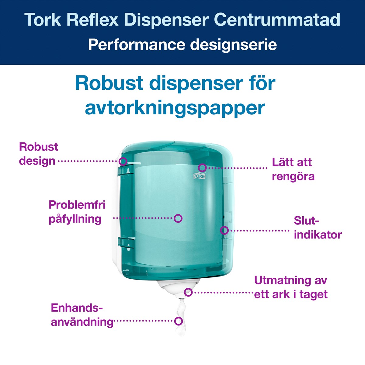Minskar korskontaminering då användare endast vidrör det som de själva använder Robust design som tål daglig användning Ekonomiskt arkmatningssystem Slutindikator möjliggör effektiv påfyllning