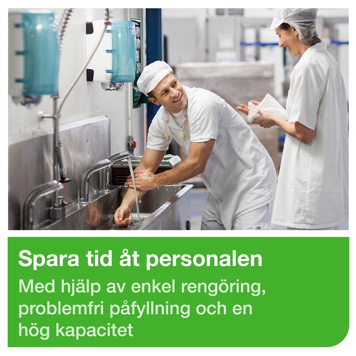 Spill är oundvikligt i ett kök eller annan arbetsplats med högt tempo, vilket betyder att hand- och ytavtorkning är essentiellt. Spara din personal tid vid rengöring med Tork Dispenser Centrummatad. Enhandsutmatning innebär enkelt ytavtorkning, medan ett obegränsat flöde tillåter användare att ta så många papper som behövs. Den centrummatade dispenserns höga kapacitet och performance-design leder till färre och enklare påfyllningar, vilket ökar produktivitet och kostnadseffektivitet.