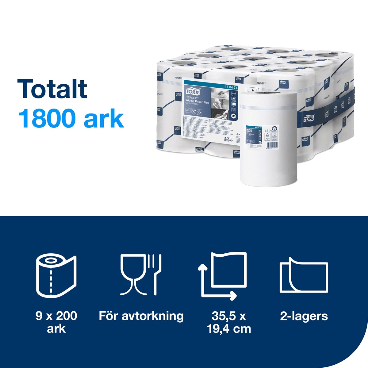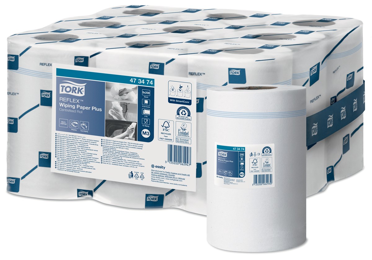 Tork Reflex® Avtorkningspapper Plus är ett papper med två lager som passar perfekt för att torka upp vätskor och torka händerna. Pappret kan användas i Tork Reflex® Dispenser Mini Centrummatad med arkmatning vilket passar teamets arbetsflöde. Dessutom minskar åtgången och risken för smittspridning minimeras. Pappret är slitstarkt, mjukt och samtidigt mycket absorberande, vilket ger effektiv avtorkning med mindre avfall. 67 m/rulle
