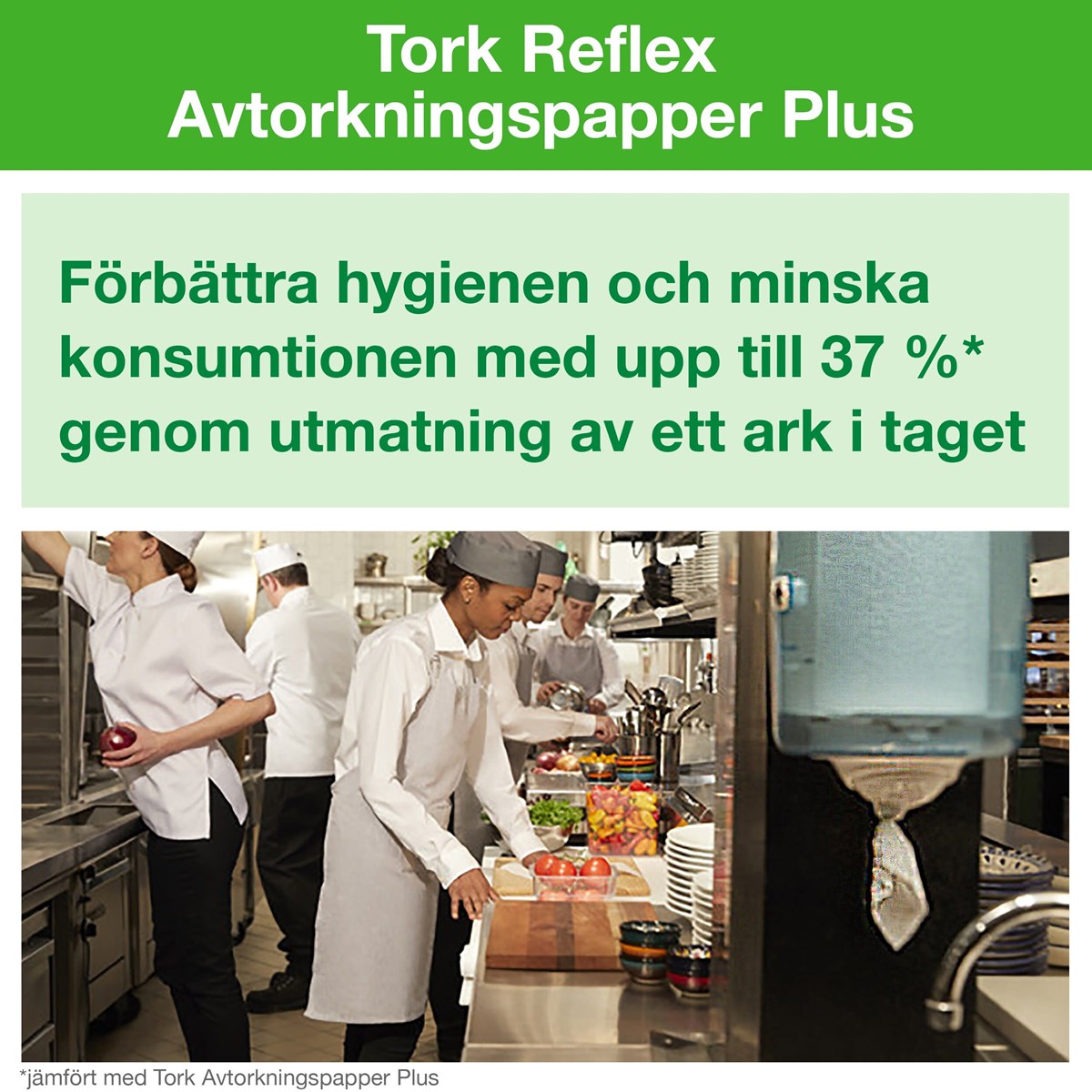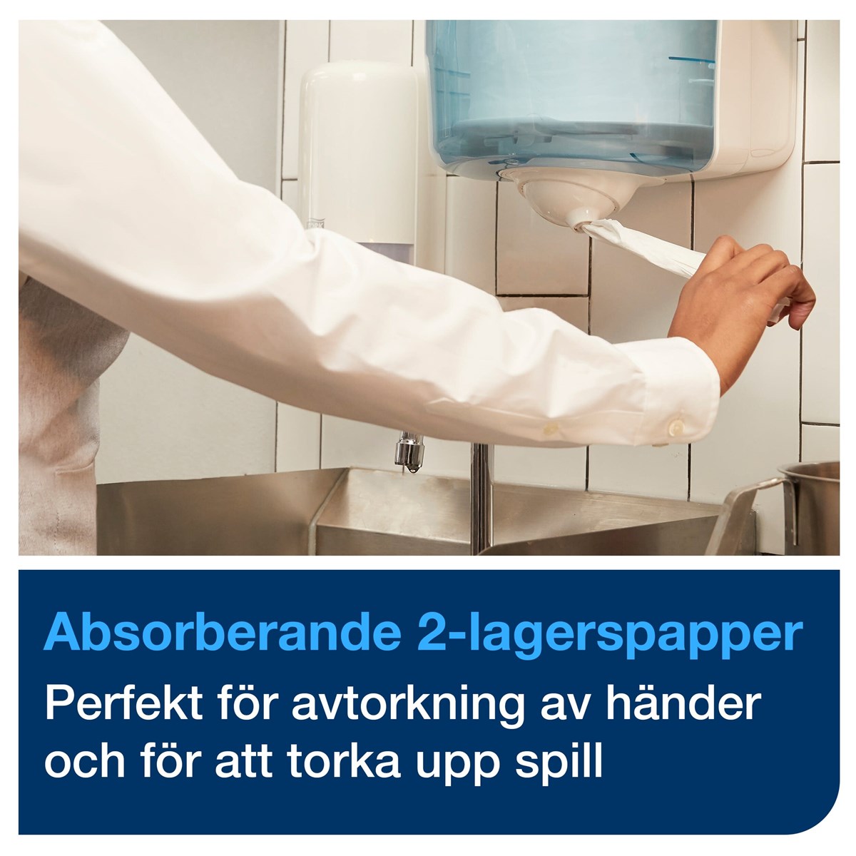 Matar ut ett papper i taget – minskar förbrukningen med upp till 37 % SmartCore® – avtagbar hylsa ger snabb och enkel påfyllning. God absorptionsförmåga för snabb upptorkning av spill och vätskor