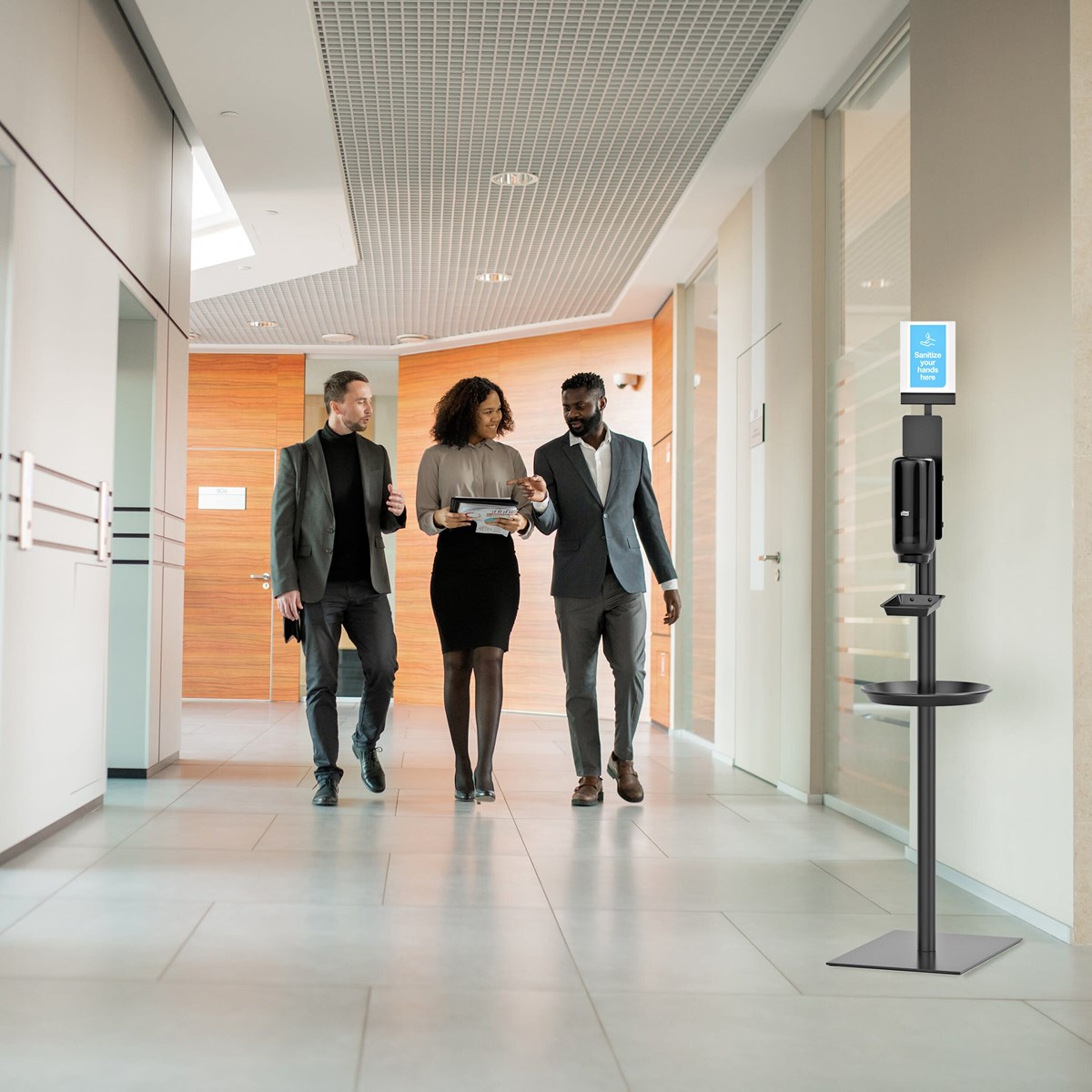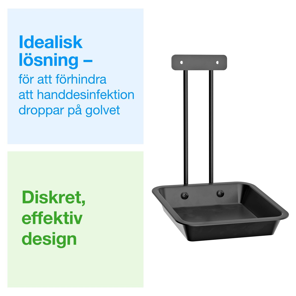 + Förhindrar spill av handdesinfektion + Avtorkningsbar för att underlätta städningen + Diskret design som passar all inredning + Robust konstruktion för minskat underhåll