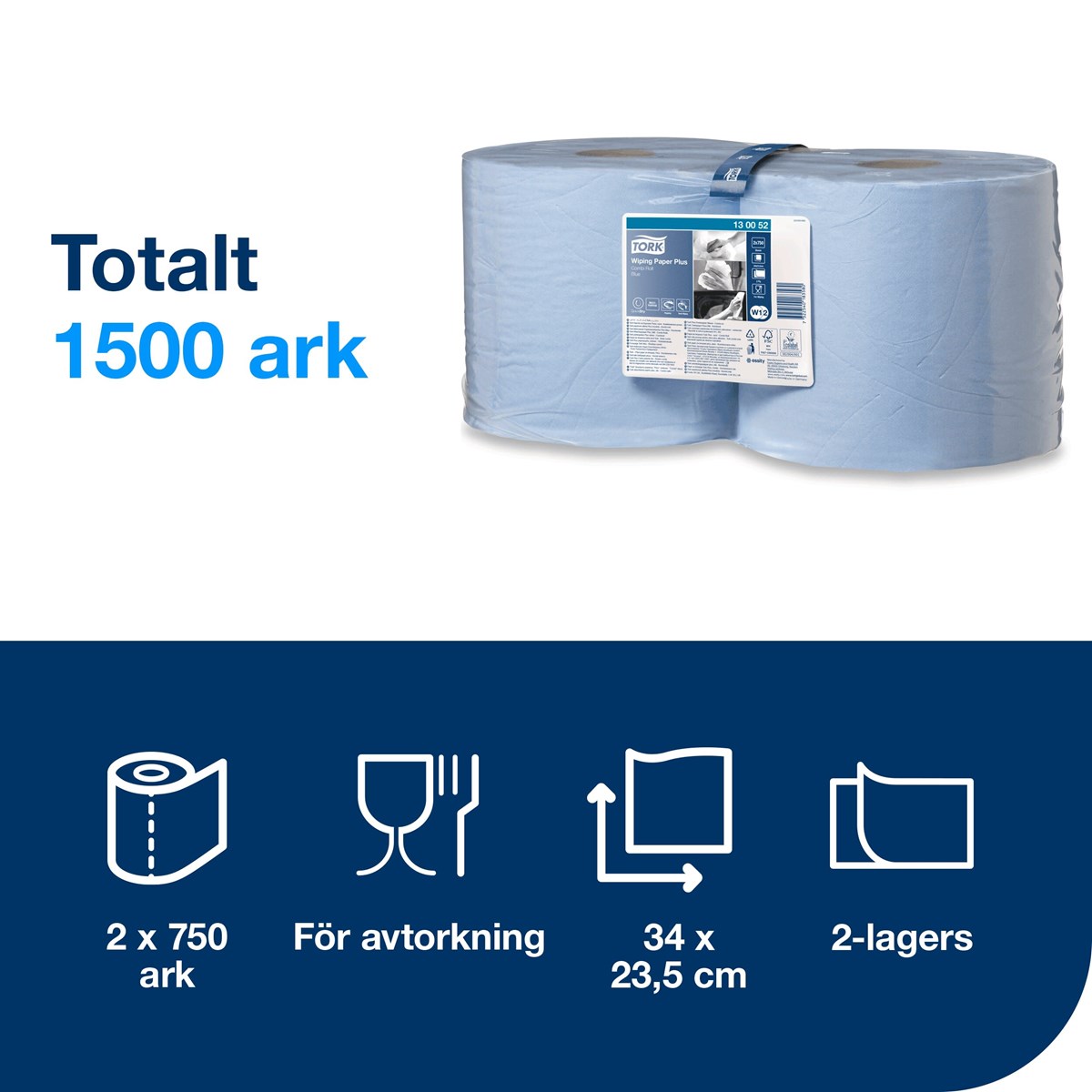 På hektiska arbetsplatser behöver personalen snabbt och effektivt kunna ta hand om spill. Vårt starka Tork Avtorkningspapper Plus är det perfekta allroundpappret för att torka upp vätskor och hålla händerna rena. QuickDry-teknologi gör pappret mer absorberande än vanligt avtorkningspapper och ser till att uppgifter kan lösas effektivt och med mindre avfall. Tork Easy Handling® plastförpackning gör det enkelt att bära och göra sig av med förpackningen, vilket sparar ytterligare tid.2 rullar, med 750 dukar vardera. 2-lagers. Premium-kvalitet. Mått: 255 m x 23,5 cm. Arkets längd: 34 cm. Hylsa inre diameter: 7,1 cm. Passar med W2-dispensrar.