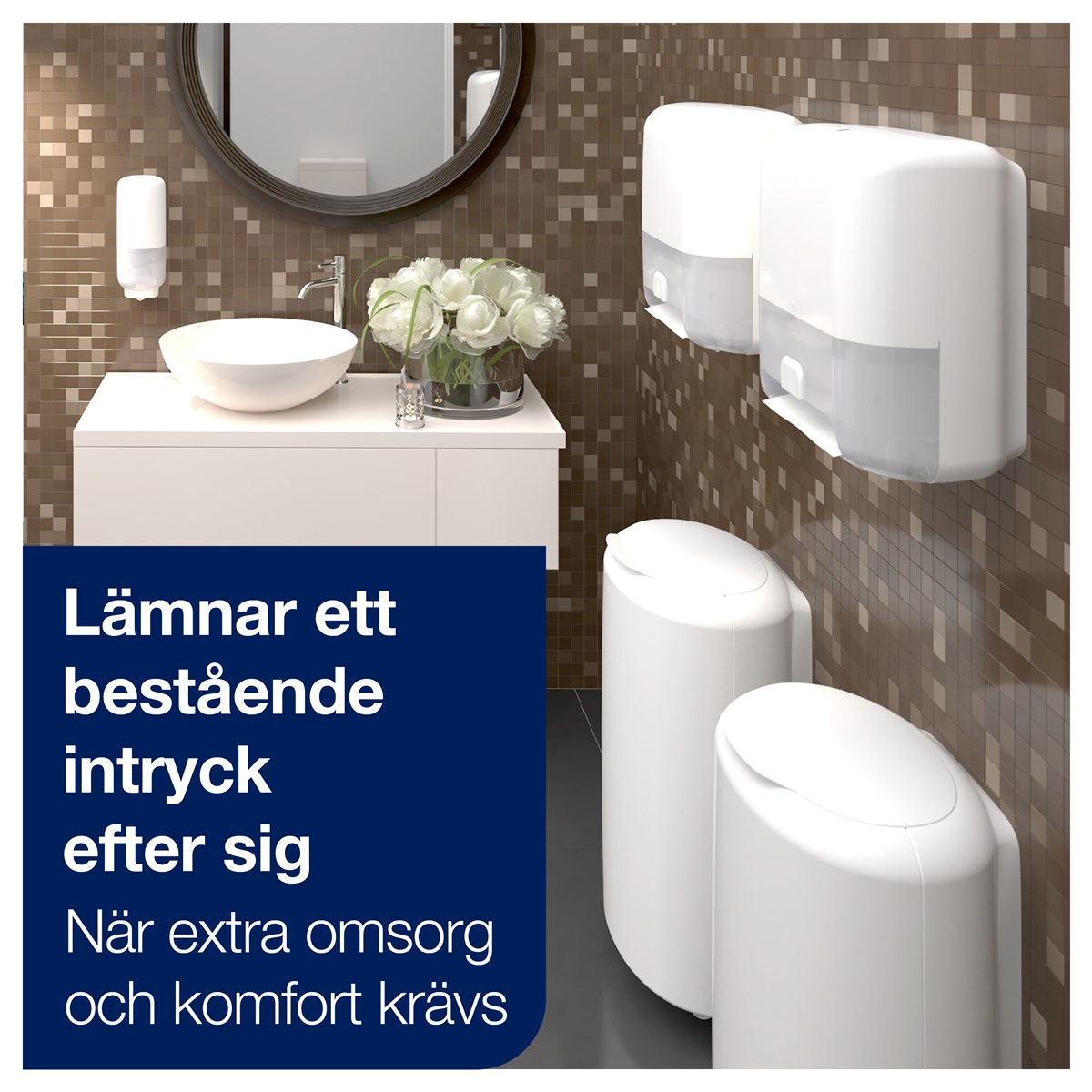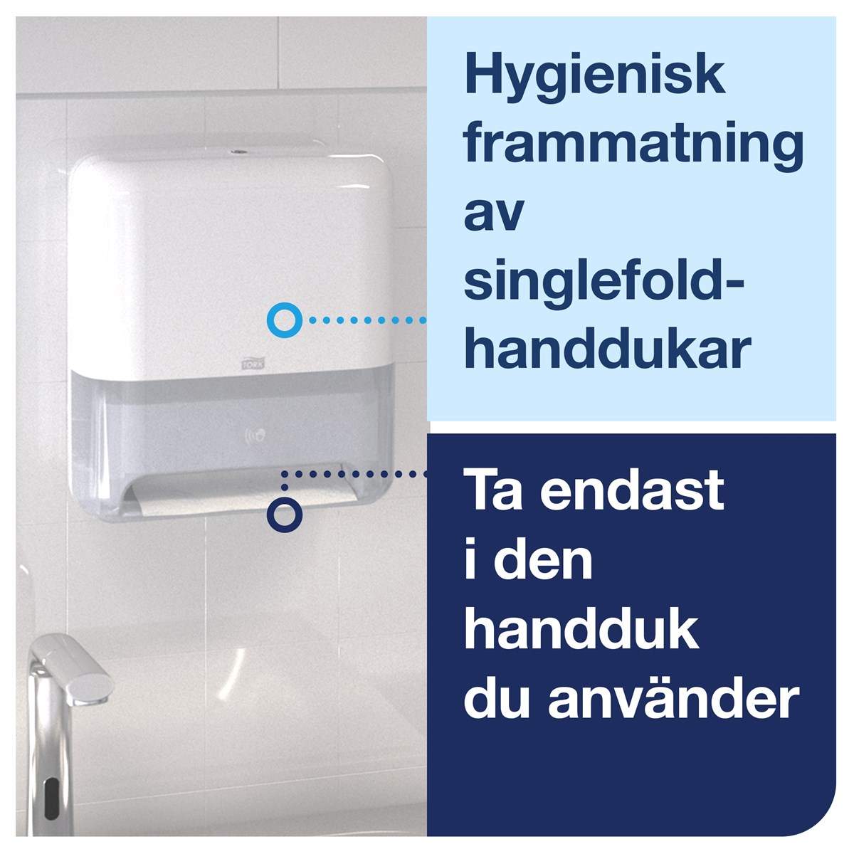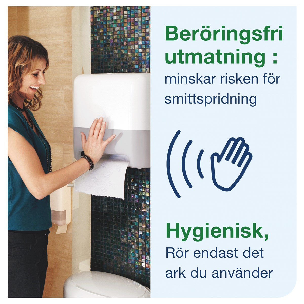 En handduk åt gången; minskar förbrukningen Beröringsfri utmatning Hög kapacitet - Enkelt att se när rullen bör bytas Idealisk för välbesökta toalettutrymmen