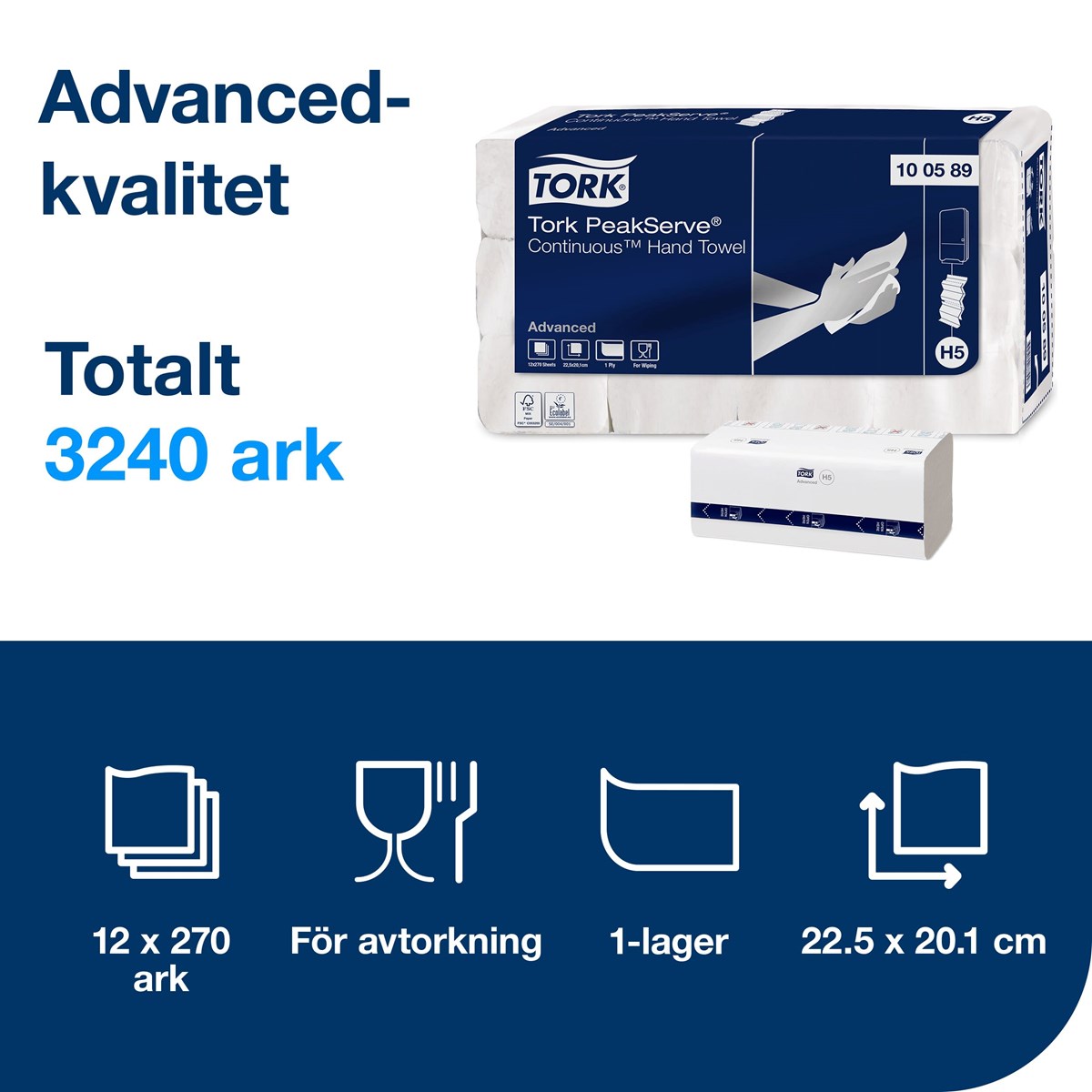 Leverera mjukhet och prestanda med dessa handdukar. Deras tilltalande lövdekor och Advanced-kvalitet gör ett gott intryck på besökare i toalettutrymmen. Dessutom kan gästerna torka händerna snabbt eftersom pappershanddukarna är 20 % mer absorberande än refiller i Universal-kvalitet. De är även idealiska om du vill undvika köbildning i välbesökta toalettutrymmen, då dispenserns höga kapacitet säkerställer att pappershanddukar alltid finns tillgängliga. Mått: 22,5x20,1 cm. 270 st/bunt, 3240 st/förp.