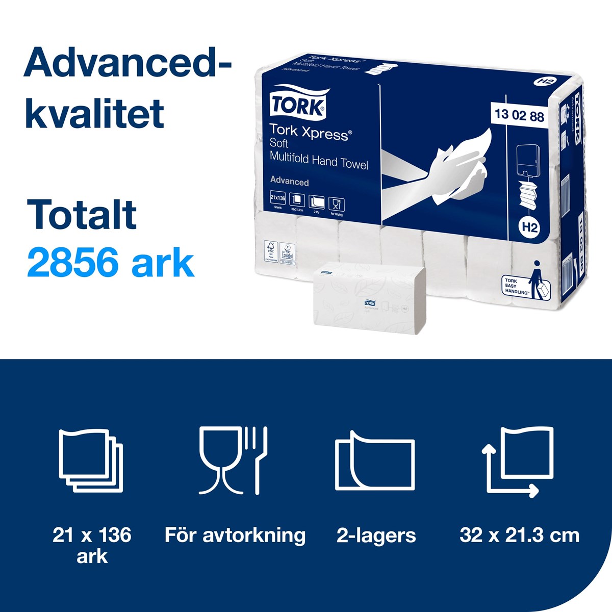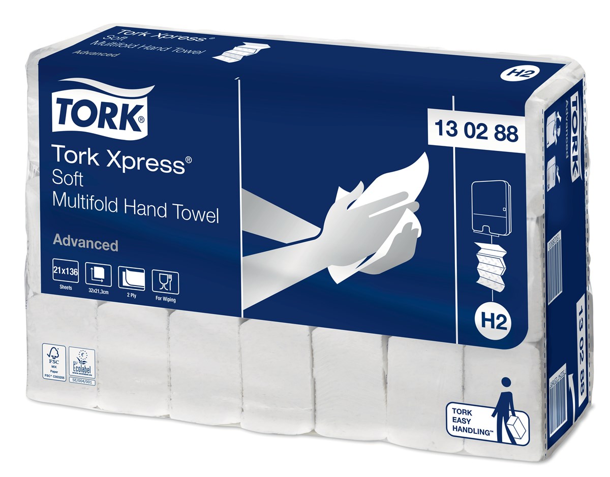 Med behagliga Tork Xpress® Mjuk Multifold Handduk i Advanced design får dina besökare en bekväm och utmärkt handavtorkning. Handdukarna är skonsamma mot huden och förmedlar en känsla av hög kvalitet. De passar i Tork Xpress® Dispenser Multifold Handduk för toalettutrymmen med medelhög besöksfrekvens. Dispensern får plats i små utrymmen och erbjuder dina gäster både komfort och hygien. 2-lags. Lövmönstrad dekor i grått. Mått: 32x21,3 cm.