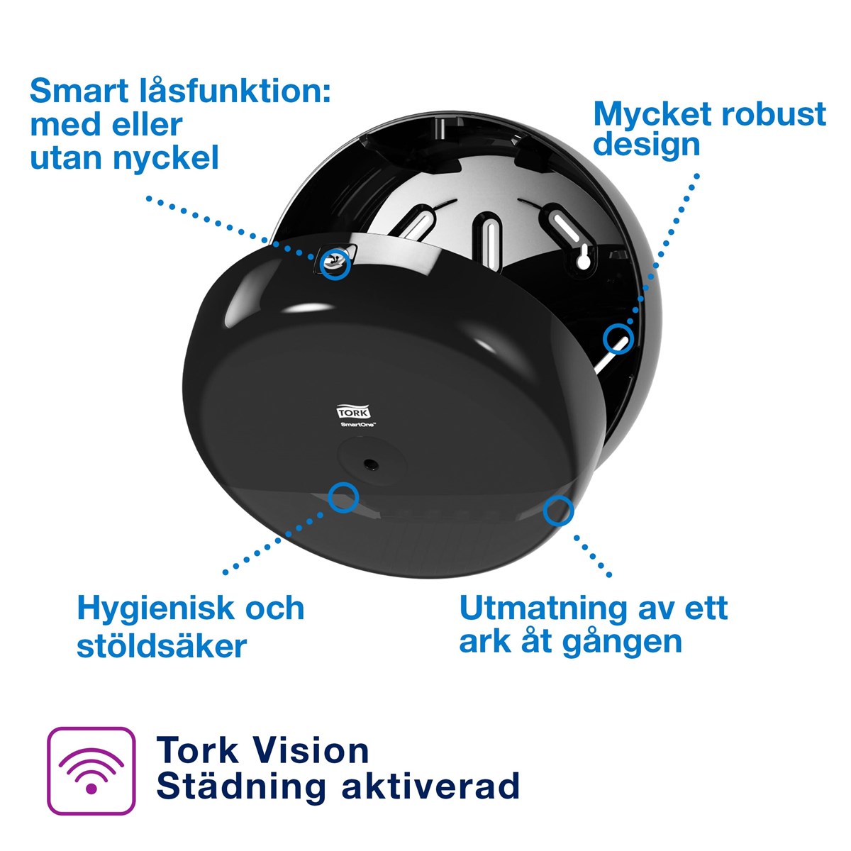 Robust plastdispenser som ger ett ark åt gången vilket minskar förbrukningen med upp till 40 %. Hygienisk - man vidrör bara det ark som man använder. Extra hög kapacitet, räcker till många besökare. Mått: (H x B x D) 26,9 x 26,9 x 15,6 cm.