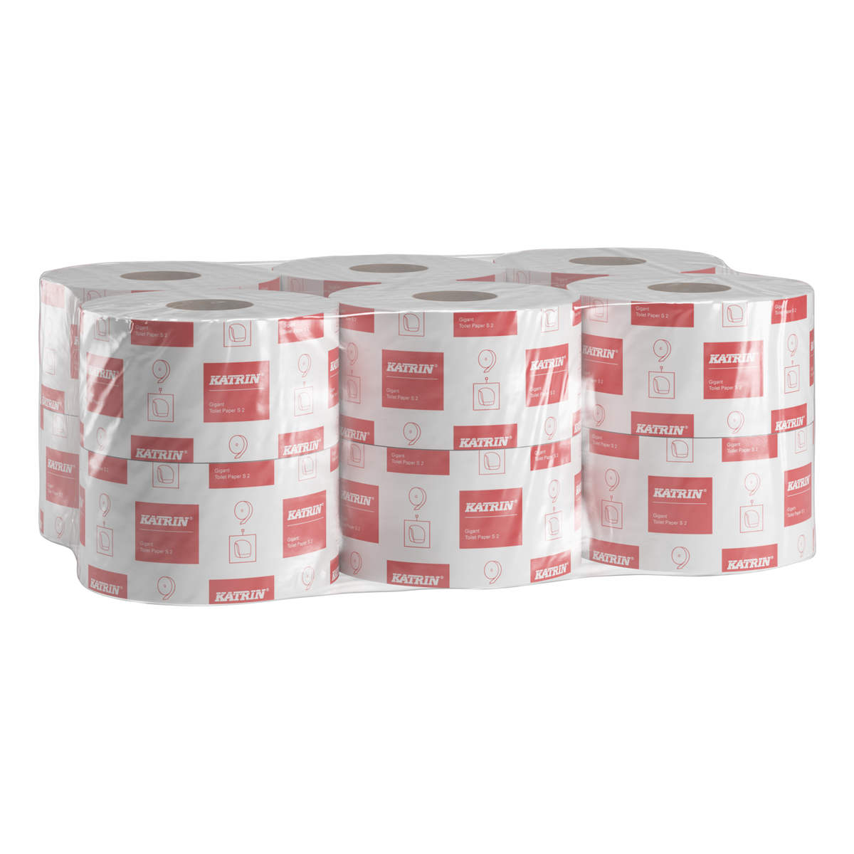 Toalettpapper av bra kvalitet för alla behov. Kompakt 2-lagers jumborulle med 200 meter på rullen. Fiberråvara: Återvunna fiber och nyfiber. Sammansättningen styrs av produktkrav samt tillgång och kvalitet för optimal användning av råvaran. Använd den integrerade restrullefunktionen för optimalt utnyttjande av hela toalettrulle. Våra stora jumborullar lämpar sig för alla offentliga miljöer med hög besöksfrekvens. Passar till: Katrin Gigant S Dispenser