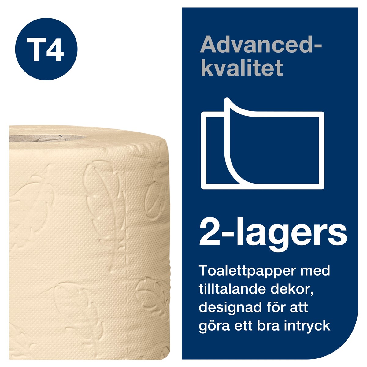 Ge gästerna samma komfort som hemma med extra långt toalettpapper i Advanced-kvalitet från Tork. Det här är ett kostnadseffektivt och funktionellt toalettpapper – perfekt för toalettutrymmen med låg besöksfrekvens. Pappret tillverkas av 100 % återvunna fibrer. Den naturligt ljusbruna färgen kommer från vår användning av återvunna kartonger som är en av fiberkällorna.