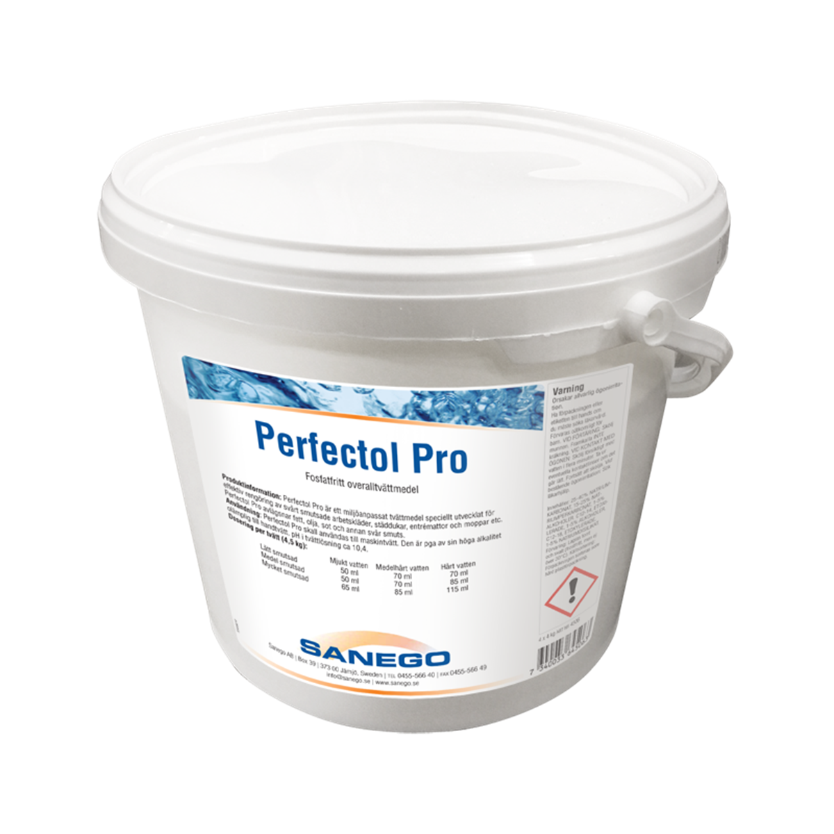 Perfectol Pro är ett miljöanpassat tvättmedel speciellt utvecklat för effektiv rengöring av arbetskläder, städdukar, entrémattor och moppar. Perfectol Pro avlägsnar fett, olja, sot och annan svår smuts.